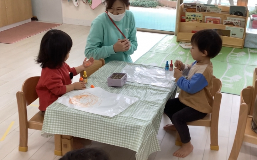 1月の誕生会は、誰のおうちのドアか当てるという内容のスケッチブックシアターをしました。