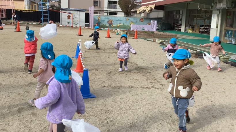 自分で作った凧を持って走ることが嬉しいみたいで、にこにこで走っていました♪