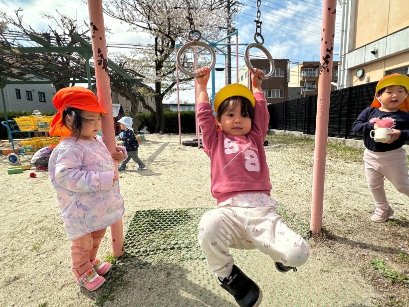 園庭で、たくさん遊んで元気いっぱい!お友だちとも関わって遊ぼうとする子も増えてきました。