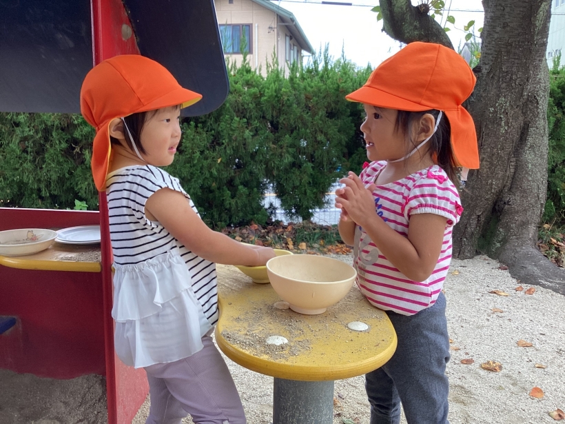 サラ砂を作るのも流行っていて今はまだ先生に作ってもらってお皿に入れているんですが、それを大事そうに持っていたり、お料理の上に飾り付けしたりしています。