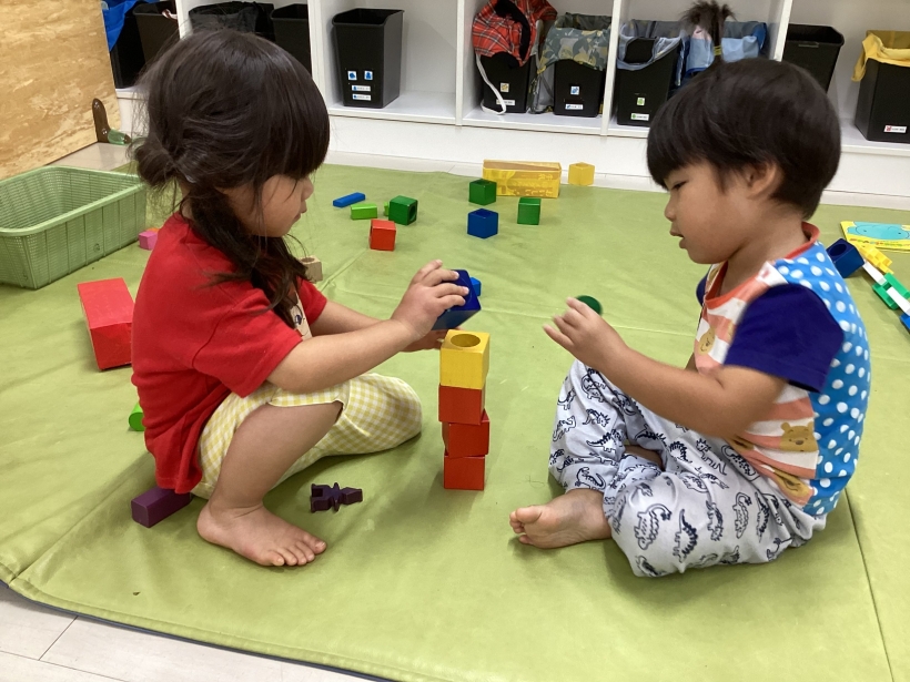 室内あそびでも、お友だちと関わって一緒に何かを作り上げる姿が見られるようになりました。