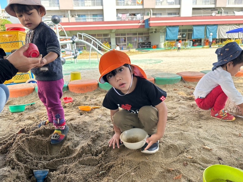 また、嬉しそうに「先生みてみてー」と見せてくれる子も。色々な触感の砂を楽しんでいるようです!