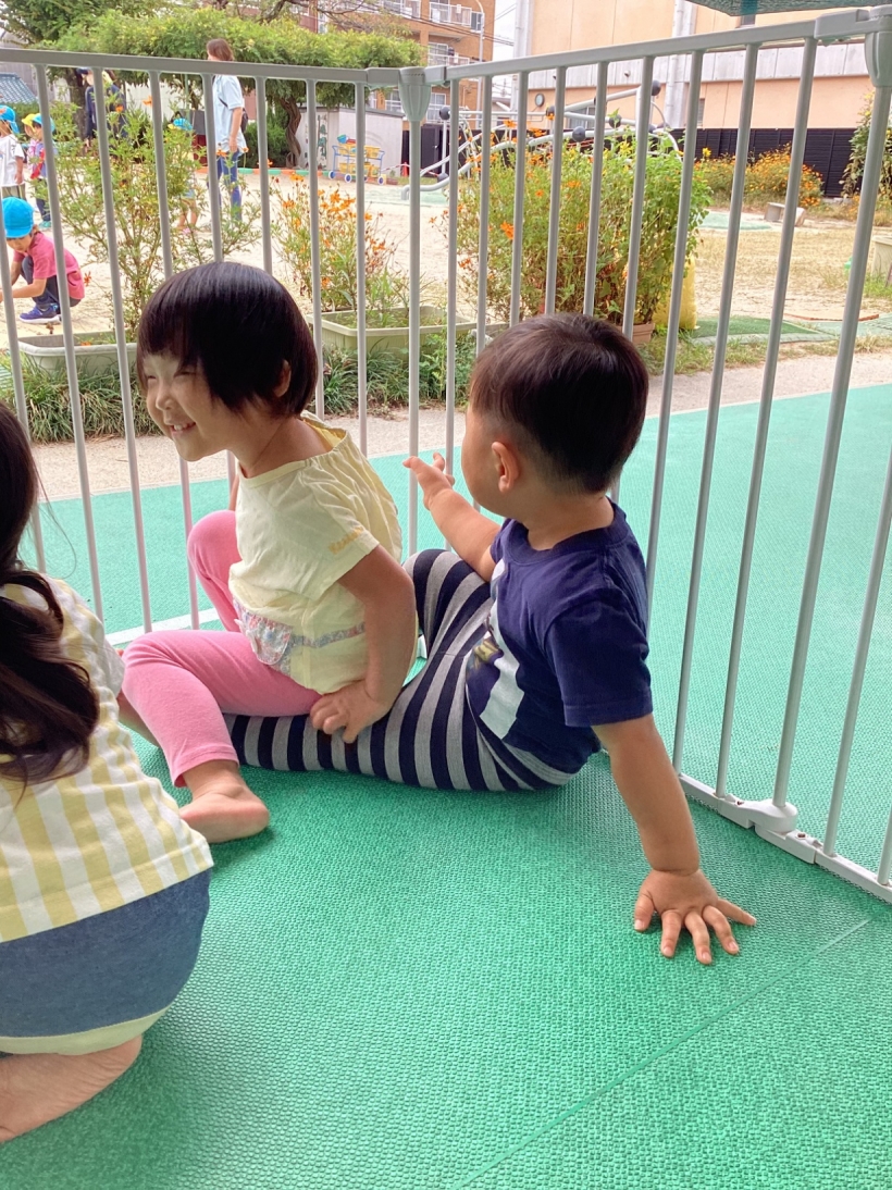 気がつくととっても仲良く座って見ているお友だちを発見!微笑ましいですね!
