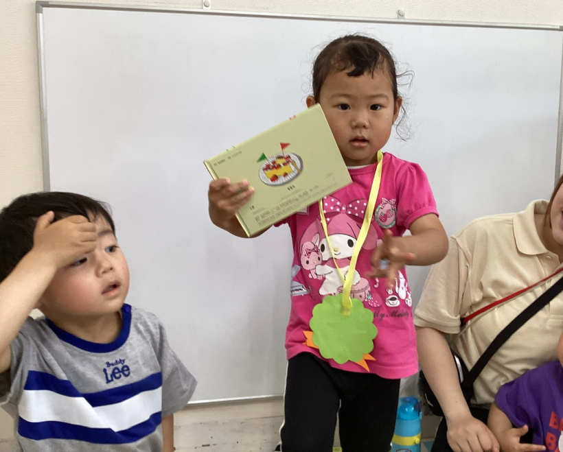 みんなで息をはいて、シャボン玉を飛ばしたり、ろうそくの火を消したりするという内容のスケッチブックシアターを見ました!