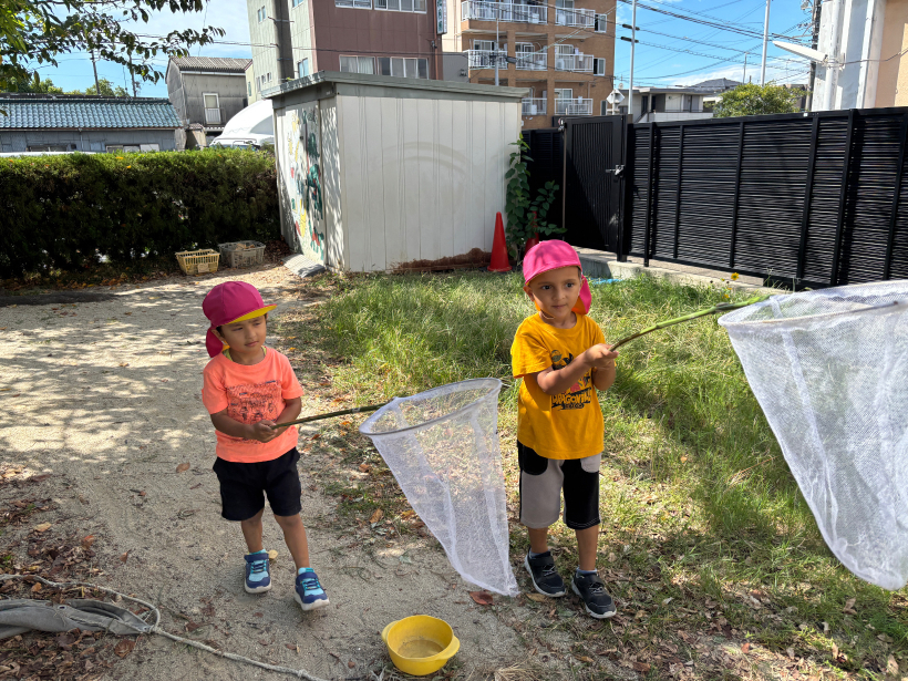 虫探し大好き!見つけると「まてー」と一生懸命網を持って追いかけています!