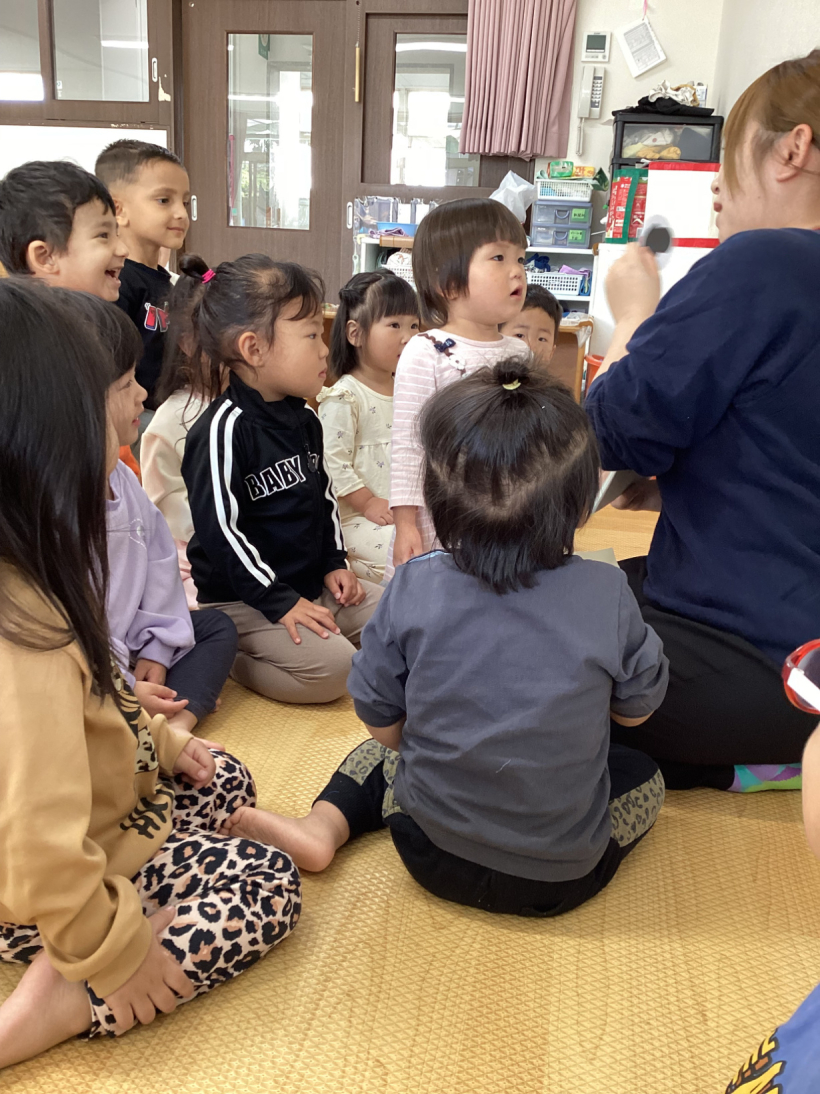 みんなでお祝いしたり、「くいしんぼうおばけ」のお話を見ました。