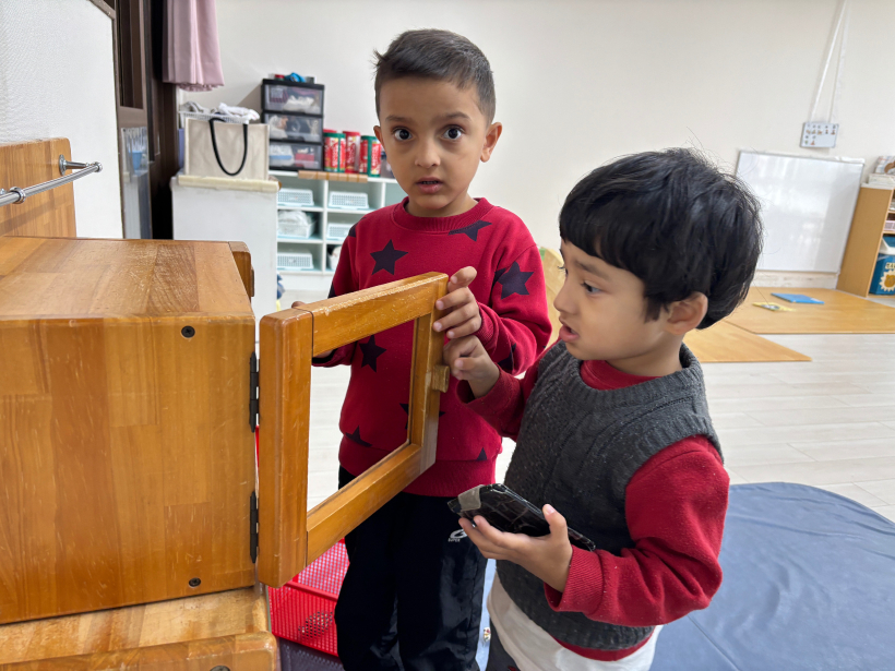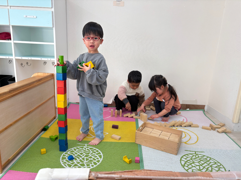 積み木を並べてドミノ倒しをしたり、何個詰めるかな?と真剣にチャレンジ!