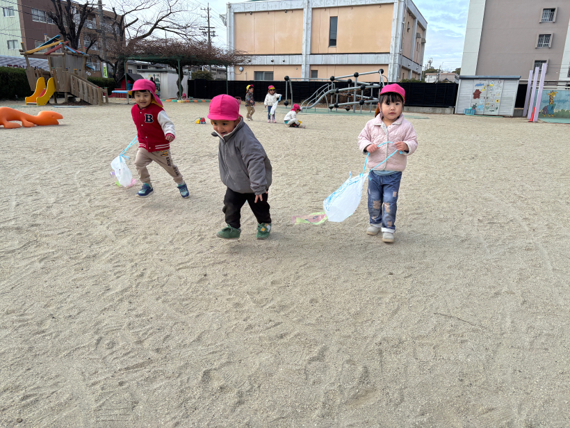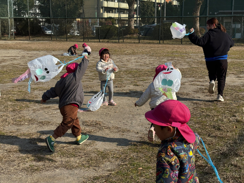 みんなで凧を持って宝公園に散歩に行きました。