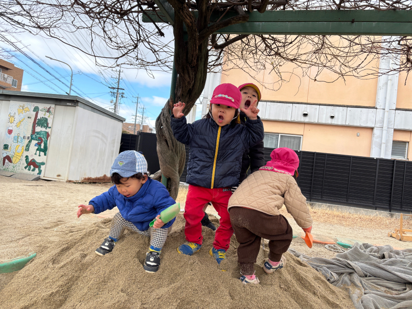 「みぎよし!ひだりよし!」と保育者と一緒に確認したり、お友だちと仲良く手を繋いで行きました。