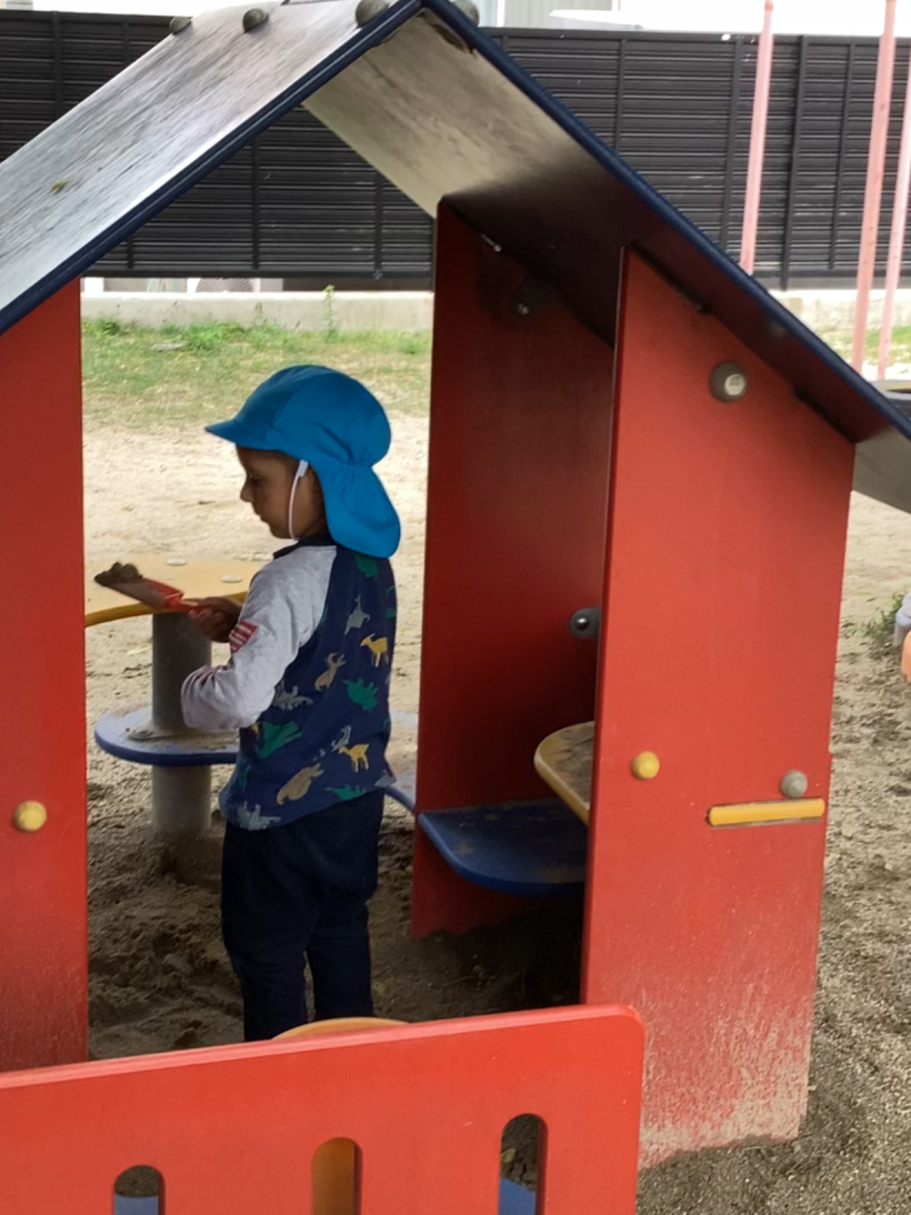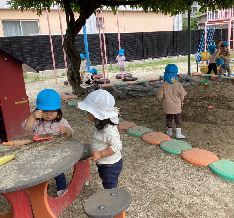 お砂場ではおままごとやお山づくりをして楽しんでいます。