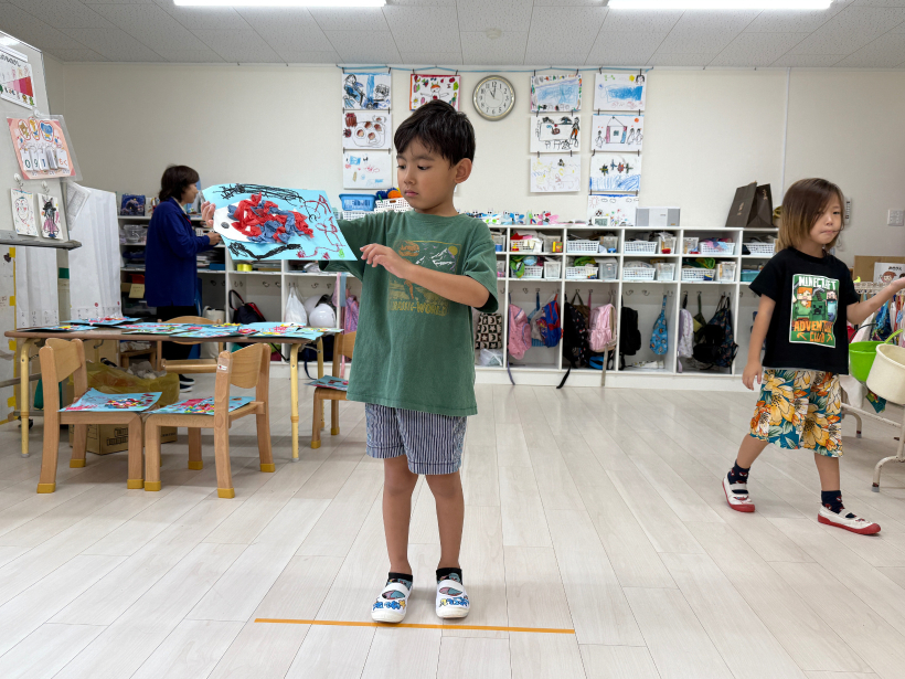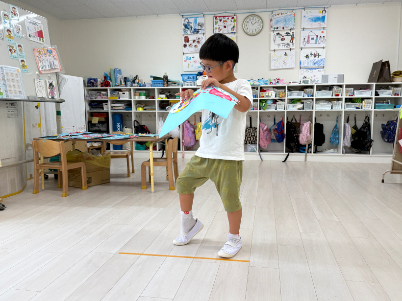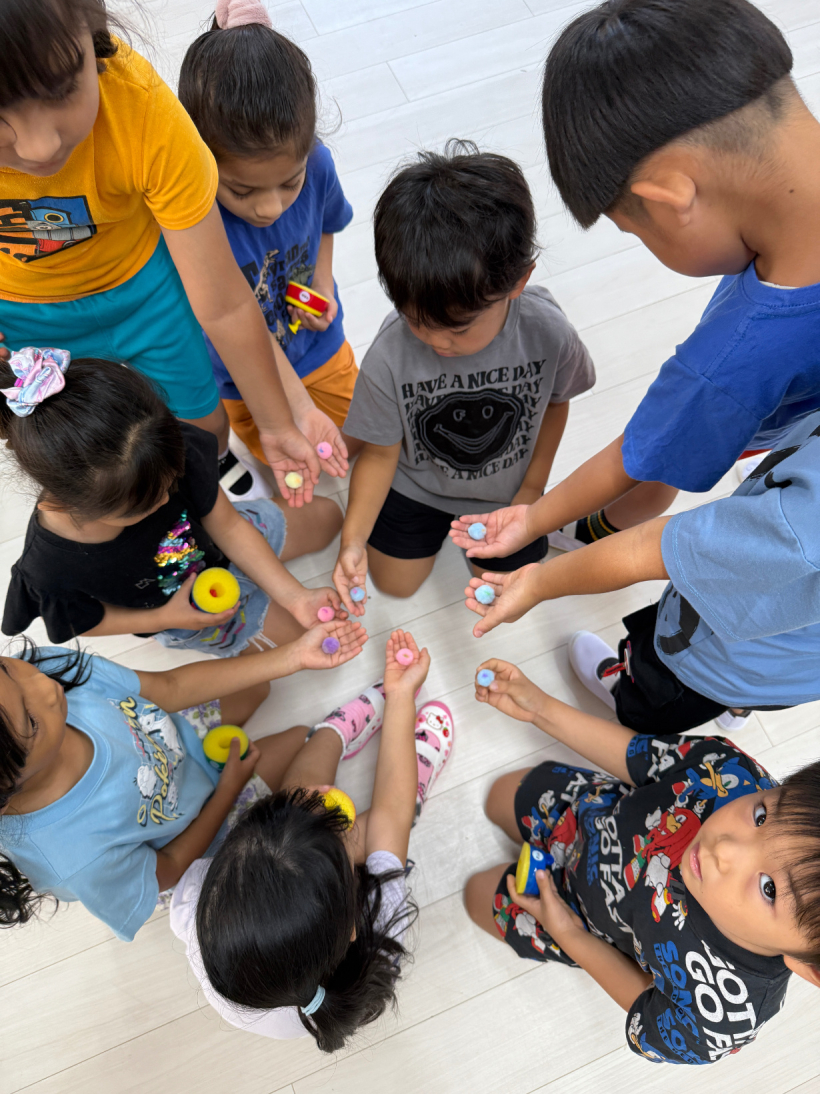 室内では自分たちで作ったおもちゃ“ポンポン飛ばし”が盛り上がりました。