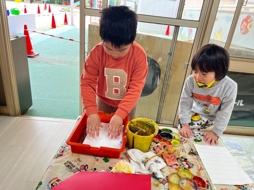 鯉のぼりの制作でマーブリングをしました。