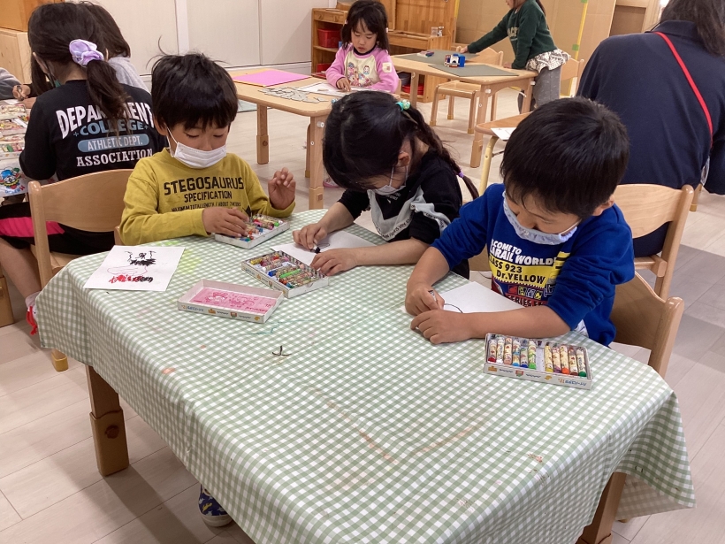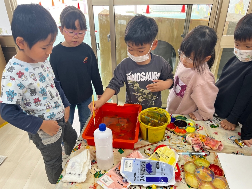 綺麗な模様が出来上がるとみんなで褒めあったり、「カメレオンみたいだね」「宇宙みたいだね」と様々なイメージが出てきて盛り上がりました。