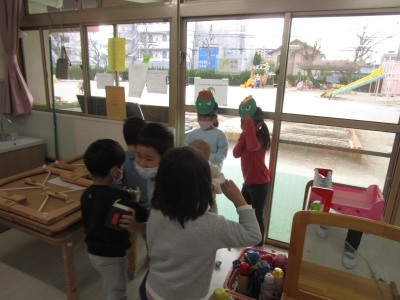 鬼や悪いものを追い払って、気持ちも新たに保育園生活を楽しんでいきたいと思います。
