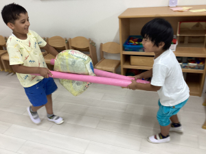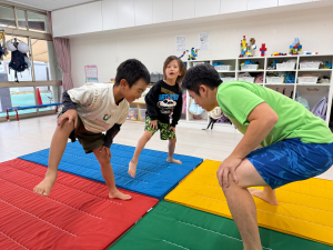 体操教室で相撲をしました。 四股を踏んで「はっけよーい、のこった!」 鉄棒では腕をしっかり曲げてぶ...