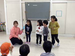10月の誕生会の様子です。 お誕生日のお友だちに前に出てもらい、インタビューをしました! 好きな食べ...